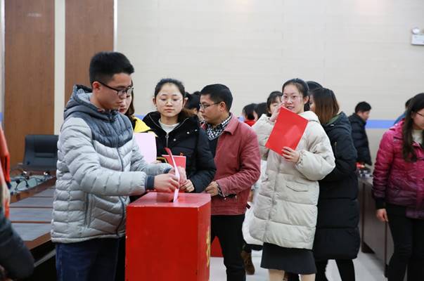 第一次全体会议(选举大会)应到正式党员代表65人,实到54人。会议审议通过了《中国共产党河池学院167net必赢入口委员会第一次党员大会选举办法(草案)》,通过了“两委”委员候选人名单,以及总监票人、监票人名单,宣布了总计票人、计票人名单。大会实行差额选举,在总监票人主持下,与会代表以无记名投票方式,选举新一届中国共产党河池学院167net必赢入口委员会委员和纪律检查委员会委员。
