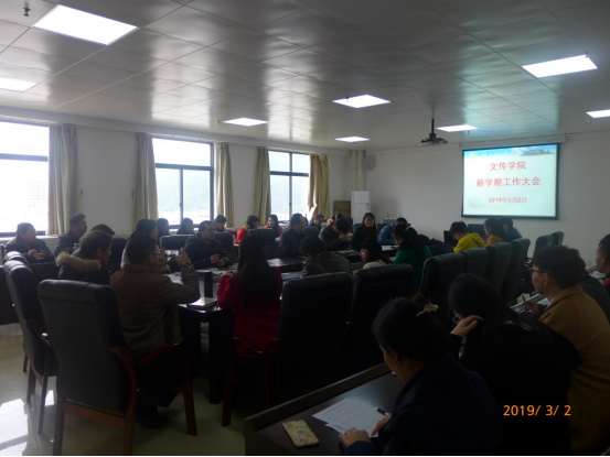 3月2日下午,文传学院在格致楼823会议室召开新学期工作部署会,文传学院全体教职工参加会议。会议由院长欧阳珍主持。