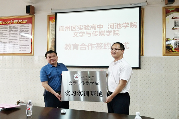 文传学院送实习生前往宜州区实验高中实习并举行实习实训基地挂牌仪式