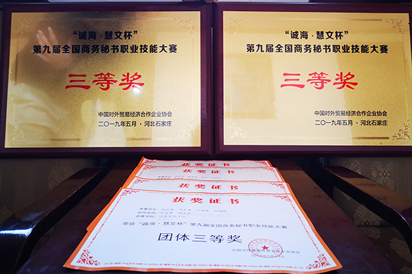 近日,由中国对外贸易经济合作企业协会主办,全国商务秘书与行政助理专家委员会和河北政法职业学院承办的“诚海·慧文杯”第九届全国商务秘书职业技能大赛在石家庄河北政法职业学院落下帷幕。我校由文传学院姚志林老师带队的2支参赛队伍均获得团体三等奖,这是我校首次参加此项全国性赛事,并在此类专业竞赛上获得一次新的突破。