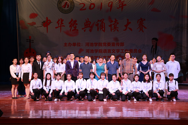 “诵读中华经典,传承华夏文明”。9月21日晚,由河池学院党委宣传部、河池学院语言文字工作委员会主办,167net必赢入口承办的河池学院2019年中华经典诗文诵读大赛决赛在东区艺术楼表演厅举行。本次比赛由蓝色、黄必辉、唐文生、莫帆、高晋五位老师担任评委,各二级学院师生到场观看。