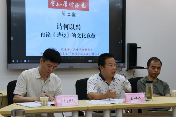 10月11日下午,“会仙学术沙龙”第二期在学校创意写作中心举行。文传学院教授熊建军围绕论题《诗何以兴——再论〈诗经〉的文化意蕴》展开了演讲。沙龙由文传学院教授寇占民博士主持,共有10位教授、博士参加了沙龙。此外,沙龙还吸引了其他教师和宜州市相关人士参加,活动持续两个半小时。