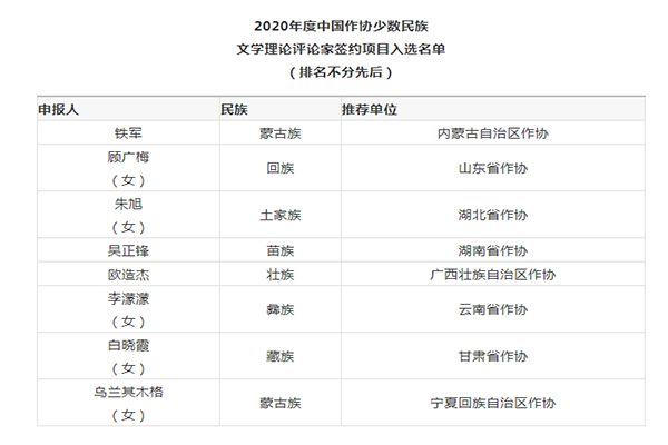 喜讯:河院欧造杰老师入选2020年度中国作协少数民族文学理论评论家签约项目名单