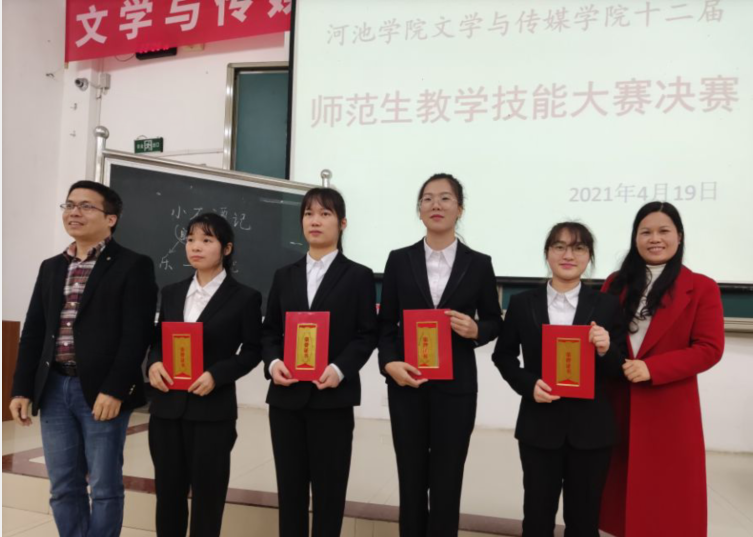 据了解,在本次决赛中获得一等奖的四名选手,将参加4月24日举行的河池学院2021年师范生教学技能大赛暨区级选拔赛,接受进一步的选拔,更优秀的两名选手将代表文传学院参加5月29-30日在南宁师范大学举行的广西师范生教学技能大赛。