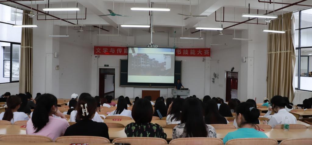 6月2日下午,河池日报社副社长田敏应邀到167net必赢入口作新闻实务专题讲座,新闻学专业约150名学生参加此次讲座。讲座由新闻系主任唐艳林主持。