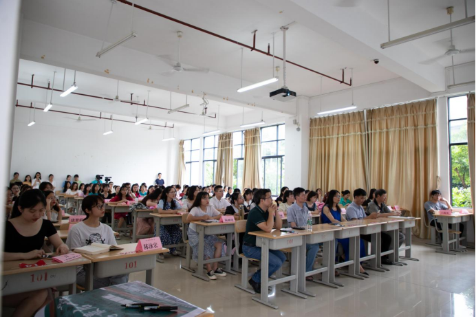覃永县老师对即将走上讲台的新老师们给予了殷切的期望与深深的祝福。他提醒大家要有教育研究者的自觉,坚持阅读与写作的同时不断地进行实践和反思,最终成为一名优秀的教师。斯藤豪斯曾经说过:“教师即研究者。”教师是一个需要付出研究的职业,而研究就是不断地追问为什么,并给出科学的答案。在今后的教学中,如果碰到问题,我们首先要抱着研究的态度,尽可能详细地描述问题,不断地追问自己“为什么”。接着,要通过阅读来进一步地了解问题并寻求解决之道。“教育中的问题,80%都是老问题。”阅读专业书籍是一个非常高效的解决方式。与黄土路老师所说的文学阅读不同,他强调的是专业阅读,即每个职业都要阅读自己的专业书籍。在找到了解决方法后,我们还需要不断进行实践验证并反思改进。“教育写作,是真正成为名师的唯一途径。”一名教师的专业成长需要通过写作来进行输出。黄锦飞老师努力创作并带动学生创作发表,陶星武老师每天记录下教学生活的点点滴滴,大家要以这两位优秀的教育写作者为榜样。最后,他作为一名老师最朴素的愿望就是希望同学们能在自己身上感受到温暖和爱,并将之传递给自己的学生。