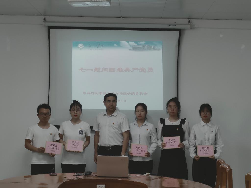 在中国共产党成立100周年暨“七一”建党节来临之际,学院于2021年7月1日下午15:00在格致楼823开展“七一慰问困难共产党员”活动。此次活动由学院党委副书记韦柳同志主持。