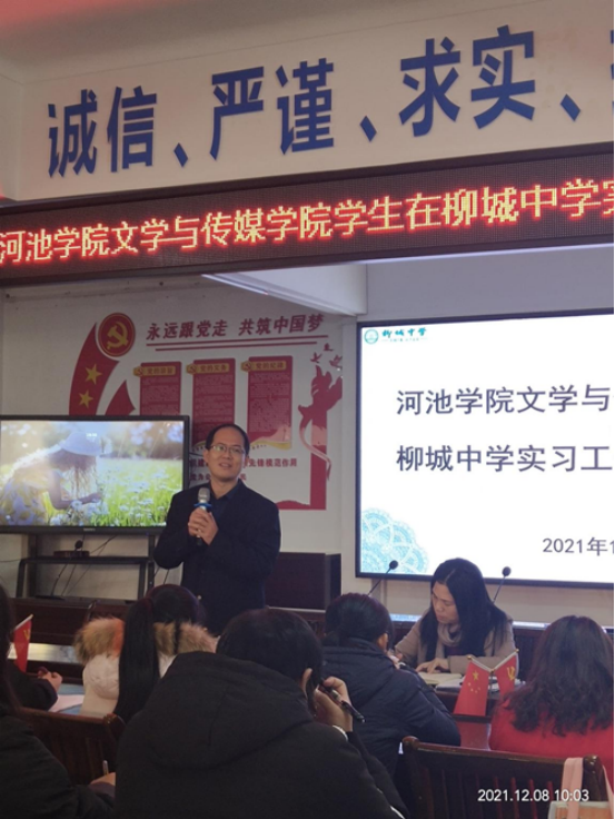 12月8日,167net必赢入口副院长刘雨过、教务办主任普列文及实习带队老师蓝利萍来到柳城中学、柳城实验高中的教学实习点,检查并指导2018级汉语言文学专业实习生的实习工作。