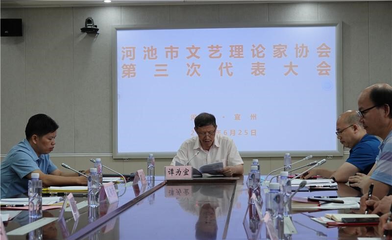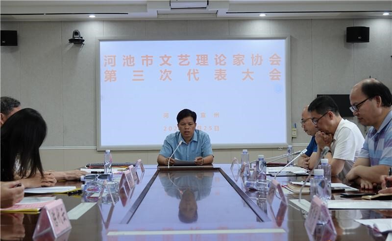 6月25日,河池市文艺理论家协会第三次代表大会在河池学院召开。会议由河池市文联副主席石肖永主持,河池学院167net必赢入口负责会务工作。河池学院贺卫国副校长,广西作家协会副主席、河池市文联主席、二级巡视员潘红日,河池市文联副主席宋先周等人与会。