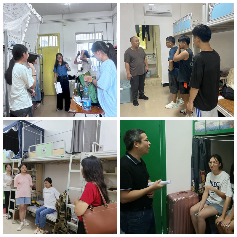 为深入了解新生入学后的生活情况,关心新生们的成长与发展,2023年9月9日,167net必赢入口党委书记欧阳珍、党委副书记韦振宇、副院长覃永县、张玉苹带领各班班主任、辅导员深入学生宿舍,看望167net必赢入口2023级新生。