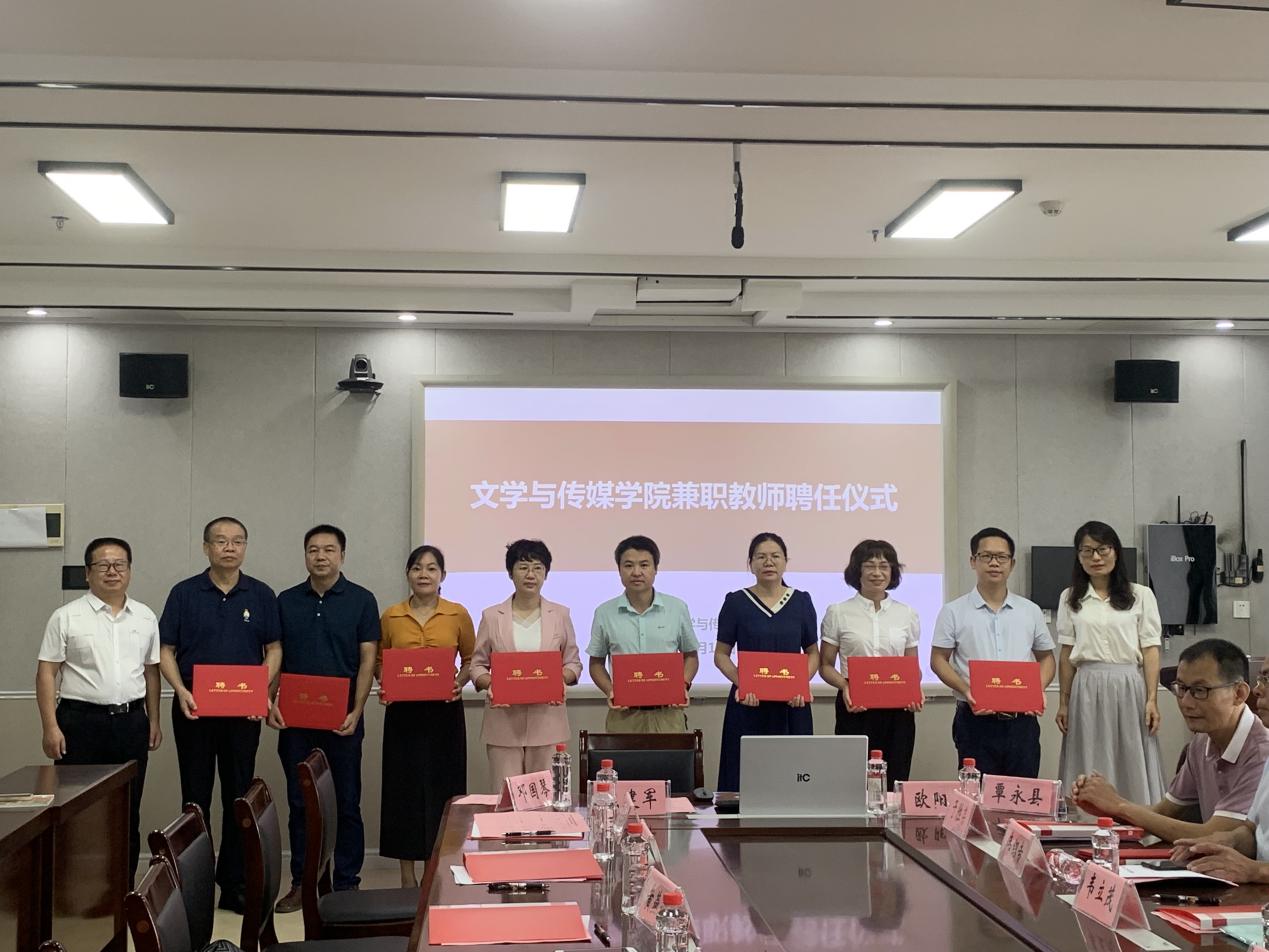 仪式中,各位兼职教师与院长熊建军完成签约环节。随后,熊建军院长与欧阳珍书记为他们颁发聘书。