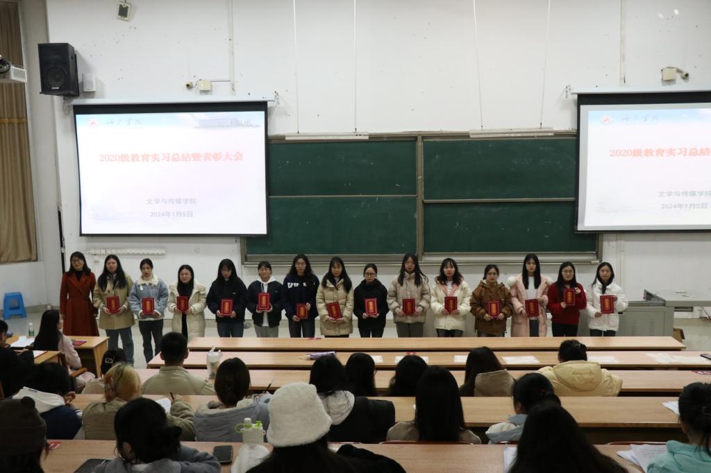 1月5日,167net必赢入口在弘毅楼1-101教室举办2020级教育实习总结暨表彰大会。学院党委书记欧阳珍、副院长张玉苹以及2021级汉语言文学专业全体学生、2020级汉语言文学专业实习生代表参加会议,会议由中文系主任邓国琴主持。