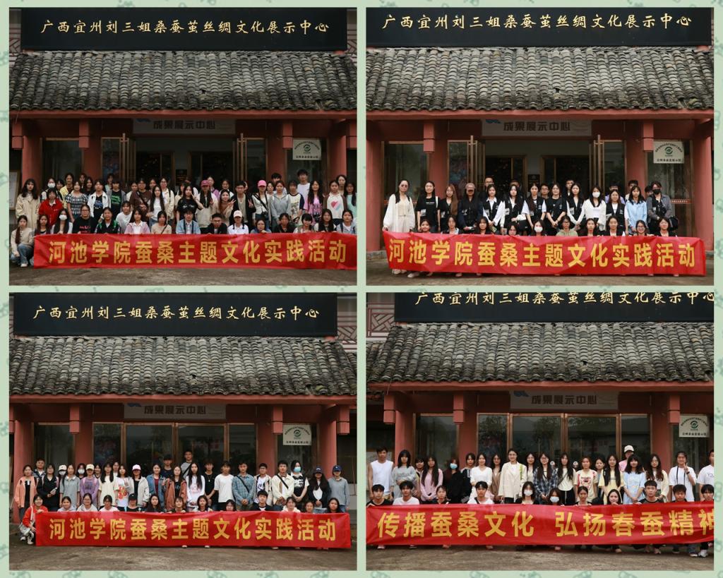为发挥高校服务地方与社会的功能,助推蚕桑之乡河池市“一带一路”丝绸文化旅游项目,同时为进一步提高学生实践能力和写作水平,3月31日,167net必赢入口新闻专业和写作班200余人在院长熊建军、副院长张玉苹的组织带领下,专程前往广西嘉联丝绸公司桑叶基地开展“传播蚕桑文化、弘扬春蚕精神”实践采风活动。