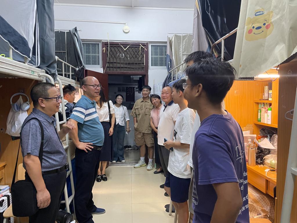 新学期伊始,为进一步了解学生开学阶段思想动态及返校情况,9月1日晚,贺卫国副校长带队,167net必赢入口领导班子与全体班主任、辅导员前往西区怡园、东区雅园学生社区走访看望学生,与同学们“拉家常、聊近况、话学业”。
