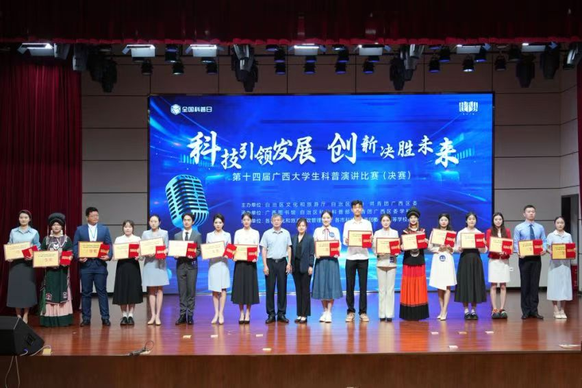 此次比赛由广西壮族自治区文化和旅游厅、广西科学技术协会科普部、共青团广西区委学校部主办,来自全区25所高校的30名大学生展开最后的比拼。我校学子张楚玥以《荷叶上的露珠》为题,就荷叶效应的原理展开演讲,赢得评委老师和观众的一致赞许。(作者:张楚玥 摄影:蒋晓昆 校对:欧阳珍 审核:韦振宇)