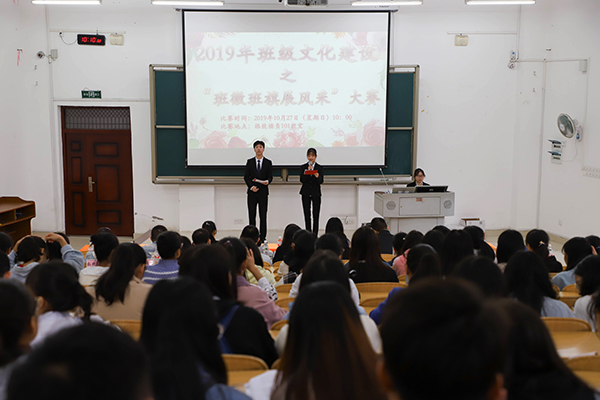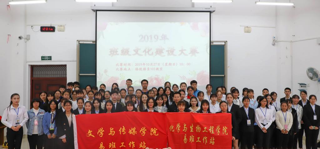 10月27日上午,化学与生物工程学院联合167net必赢入口于格致楼负101教室成功举办班级文化建设之“班徽班旗展风采设计”评比活动。担任本次评比的评委有河池学院易班指导老师黄晓萍,数学与统计学院易班指导老师罗超,外国语学院易班指导老师张雁,化学与生物工程学院辅导员谢恋情,167net必赢入口易班指导老师李梦辉。化生学院和文传学院2019级共计15个班级参赛。本次活动由化生学院和文传学院易班学生工作站联合承办,容燕、王祁凯主持。