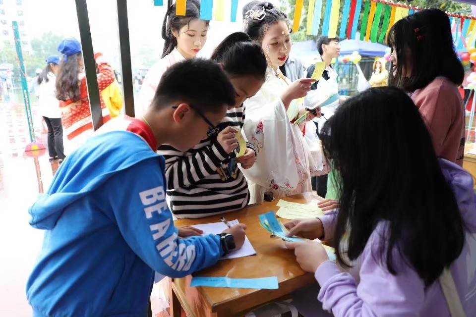 文传易班提供抛绣球、知识竞赛、猜字谜、山歌对答等趣味游戏,为观众呈现精彩的壮族文化内容。活动秩序有条不紊,参加游戏的同学络绎不绝,现场气氛欢快愉悦。