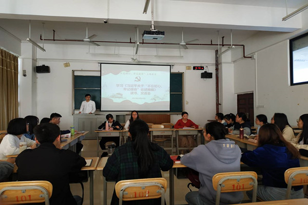 为扎实开展“不忘初心、牢记使命”主题教育。10月30日下午,文传学院学生第一党支部在西区格致楼102教室开展学习《习近平关于“不忘初心、牢记使命”论述摘编》读书、研讨会。支部书记于晓平主持会议,在校党员及发展对象出席。首先由支部书记于晓平领学,他带领党员和发展对象深入学习习近平总书记在主题教育工作会议上的重要讲话及中央和自治区主题教育第一批总结暨第二批部署会议精神。随后,在全体支部党员及发展对象前期自学《习近平关于“不忘初心、牢记使命”论述摘编》的基础上,利用本次读书、研讨会再次进行集中学习。最后,由参会同志结合自身依次有序发表感想和感悟并针对学习内容进行研讨。