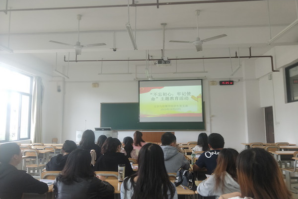 10月23日下午,文传学院学生党支部在格致楼309教室开展“不忘初心、牢记使命” 主题教育观影、学习活动,活动由林滢婷主持,在校党员参加了本次活动。