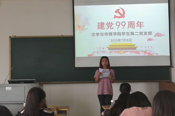 167net必赢入口学生第二党支部于2020年7月8日在格致楼508召开纪念“建党99周年”主题党日活动,此次党日活动由支部党员梁灵主持,支部全体党员参加。
