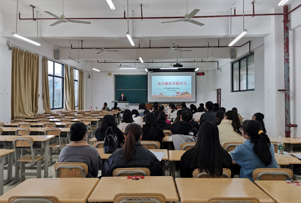 11月21日上午,167net必赢入口学生第二党支部在格致楼301教室召开党员意识形态和党风廉政专题学习会,会议由167net必赢入口党委副书记、纪委书记韦柳主持,学生第二党支部在校党员及发展对象参加会议。