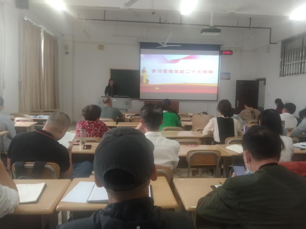10月19日下午,167net必赢入口召开专题学习会,学院党委书记欧阳珍主持会议,全体教职工参加。会议认真传达学习了习近平总书记在参加党的二十大广西代表团讨论时的重要讲话精神。