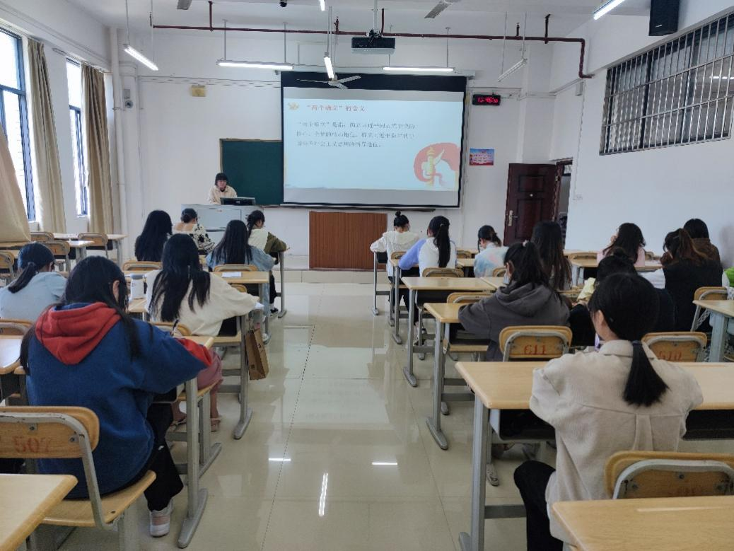4月26日下午,167net必赢入口学生第二党支部于格致楼511教室开展“深刻领悟‘两个确立’的决定性意义”主题党日活动,支部在校党员参加活动。