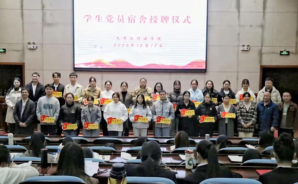 12月18日下午,文传学院在东区弘毅楼1-205室为党员宿舍授牌,学院党委副书记韦振宇、副院长张玉苹、正处级专职组织员席战强、辅导及全体党员参加会议。韦振宇、席战强为党员宿舍授牌。
