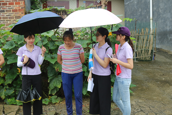 在下乡期间,正好赶上雨季,连绵的雨滴,一直淅淅沥沥的下着,虽然天公不作美,但依旧不能阻挡我们前进的步伐。连绵的雨水飘湿了衣服,泥土裹住了鞋子,但是队员们的心依然坚定无比,努力克服天气给我们带来的不便,高效的完成了本次活动。