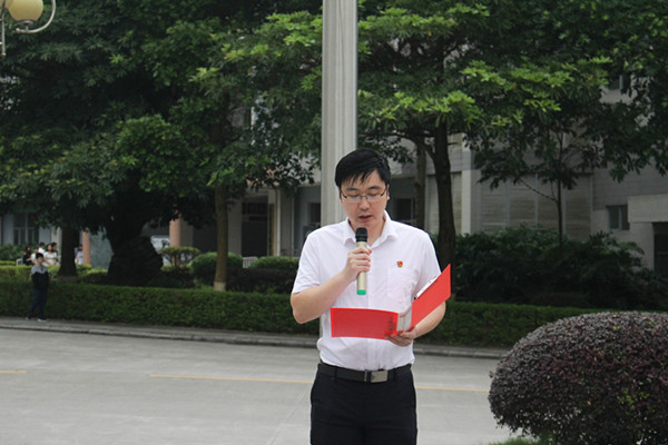 5月31日上午,167net必赢入口于东区逸夫楼广场举行“为党育人、党史铸魂”国旗下党史学习教育,167net必赢入口团委书记于晓平主持,167net必赢入口党委书记牙运豪及文传学院在校学生300余人参加。