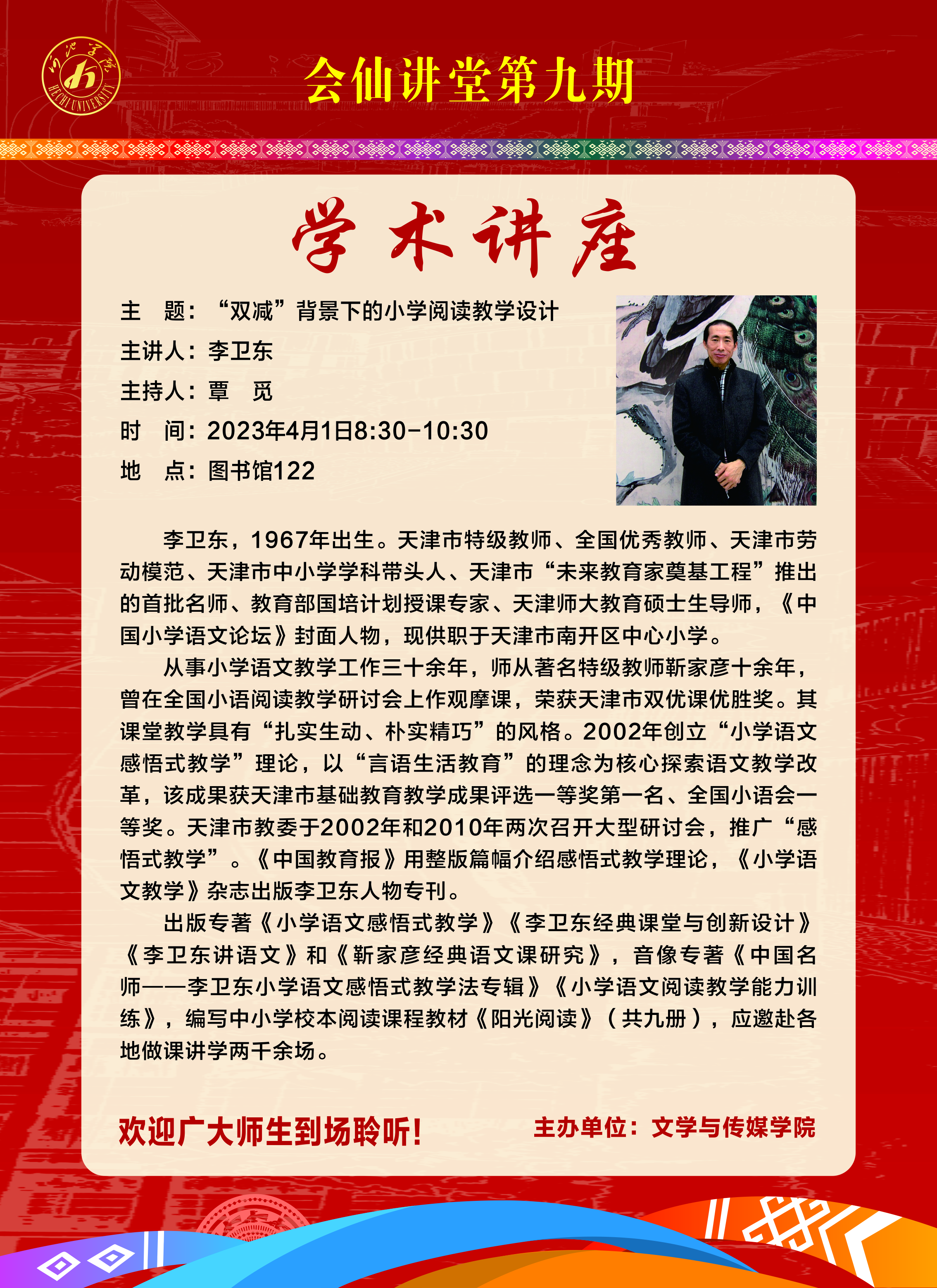 【会仙讲堂】第九期:“双减”背景下的小学阅读教学设计