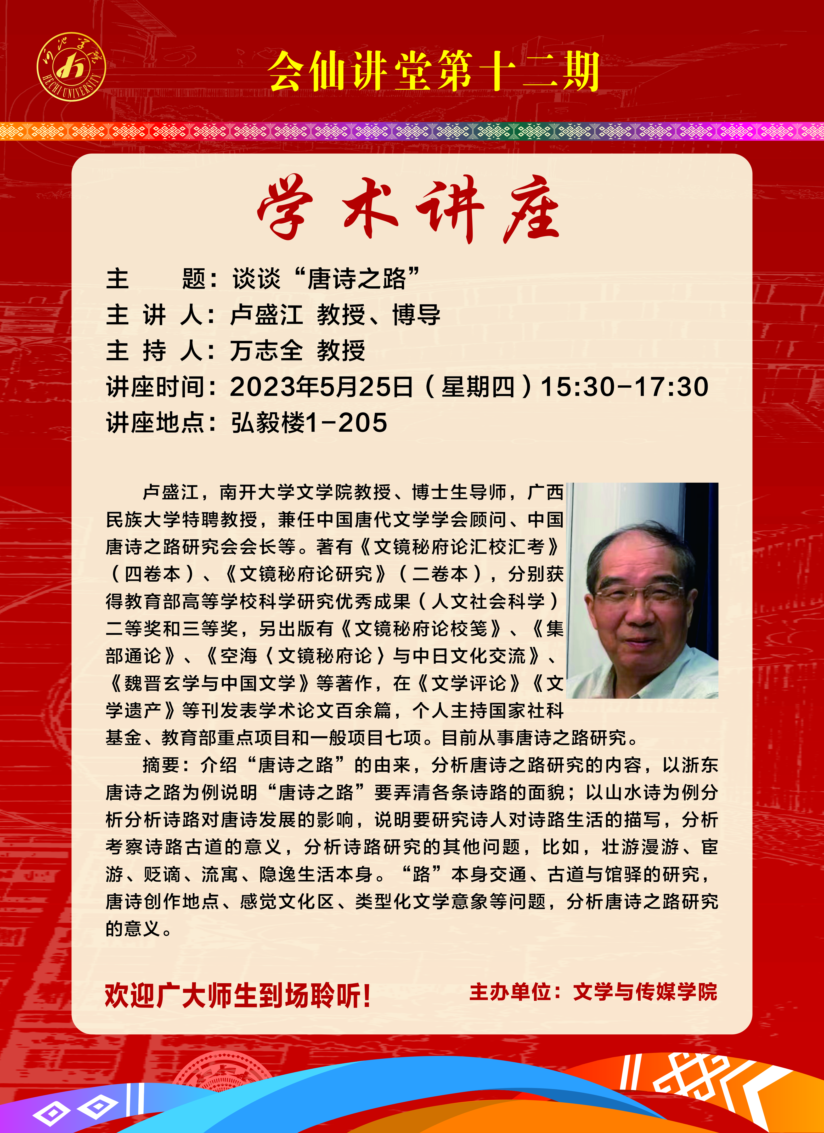 【会仙讲堂】第十二期: 谈谈“唐诗之路”