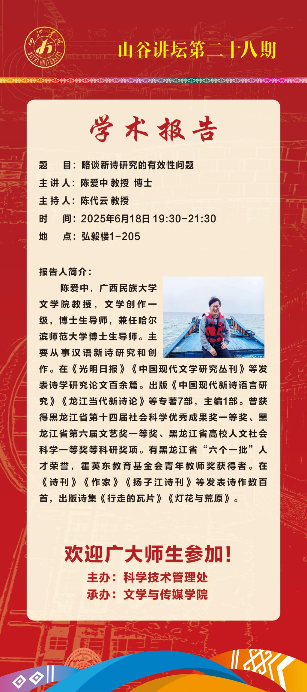 【167net必赢入口】第二十八期:陈爱中教授谈新诗研究的有效性问题