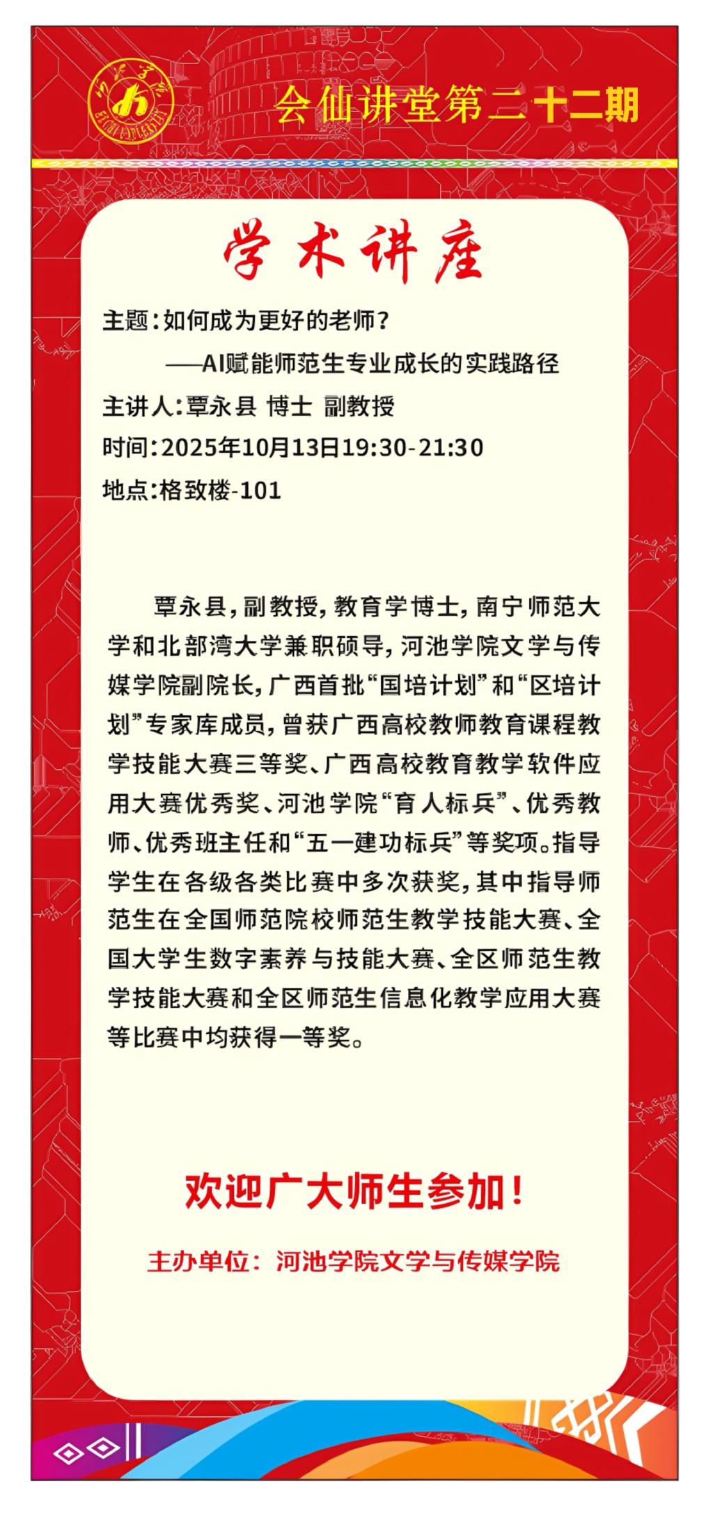 【会仙讲堂】第二十二期:如何成为更好的老师? ——AI赋能师范生专业成长的实践路径